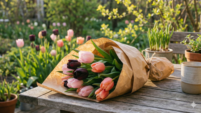 • Hidas kasvu: Tulppaanimme saavat kasvaa luonnon rytmissä länsirannikon viileässä keväässä. Tämä tekee varsista vahvoja ja kukista poikkeuksellisen kestäviä.